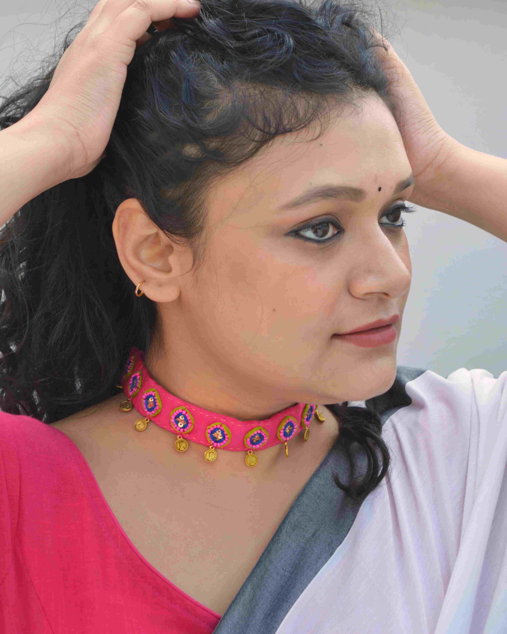 Introducing the Kaju Katli Choker, a meticulously hand-curated piece that embodies both elegance and bold artistry. This striking choker features intricate embroidery and exquisite beadwork, showcasing a vibrant color palette that effortlessly elevates any ensemble. Whether paired with traditional attire or contemporary outfits, the Kaju Katli Choker stands out as a true statement piece, captivating attention and igniting admiration.